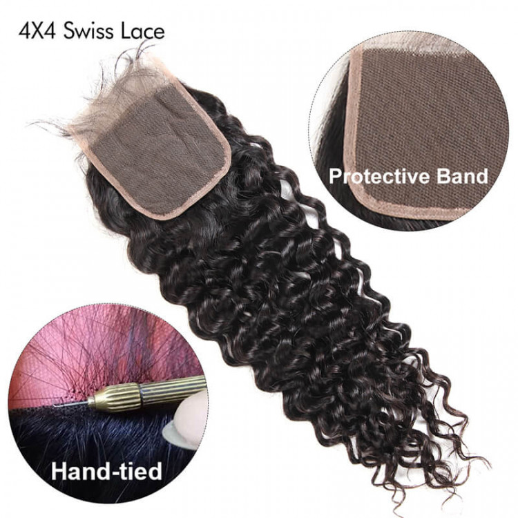 Water Wave Hair 2 Bundles With 4x4 Lace Closure West Kiss Hair