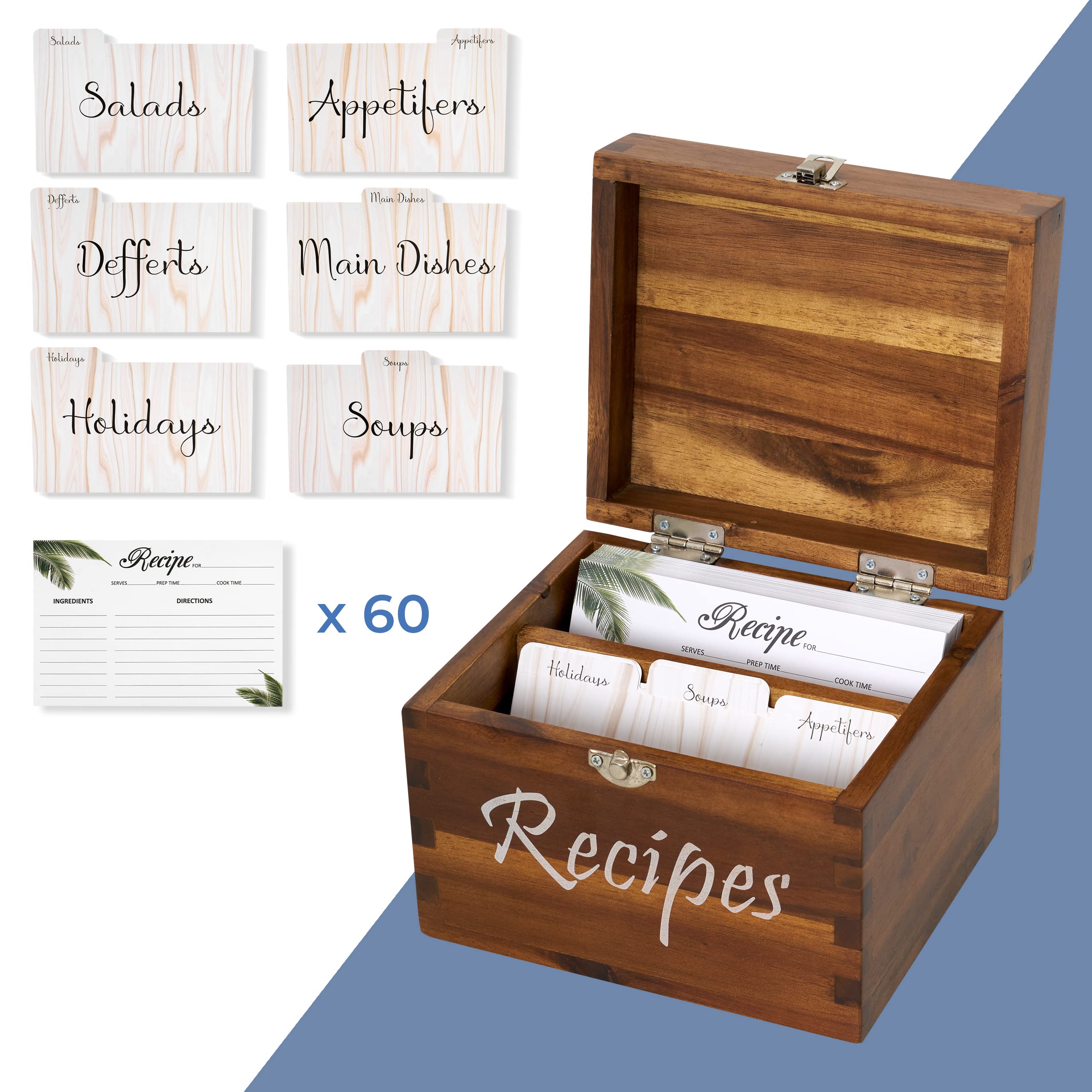 Stock Your Home Handmade Wooden Recipe Box 75 Recipe Cards And 8 Dividers Easy To View Slot And Plastic Recipe Card Holder Conversion Chart Termites And Amazon De Home Kitchen